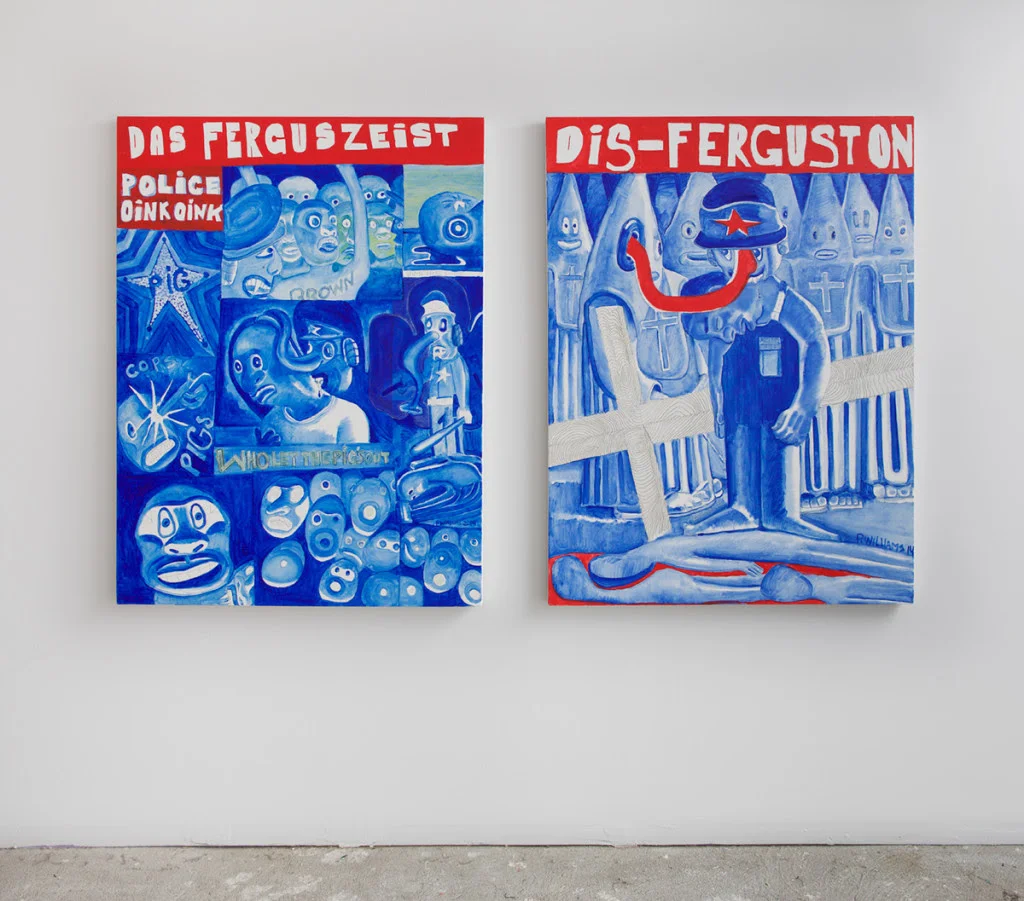 Peter Williams. Ferguson, For Guston (diptych), 2014, Oil on canvas, 48 x 36 inches each