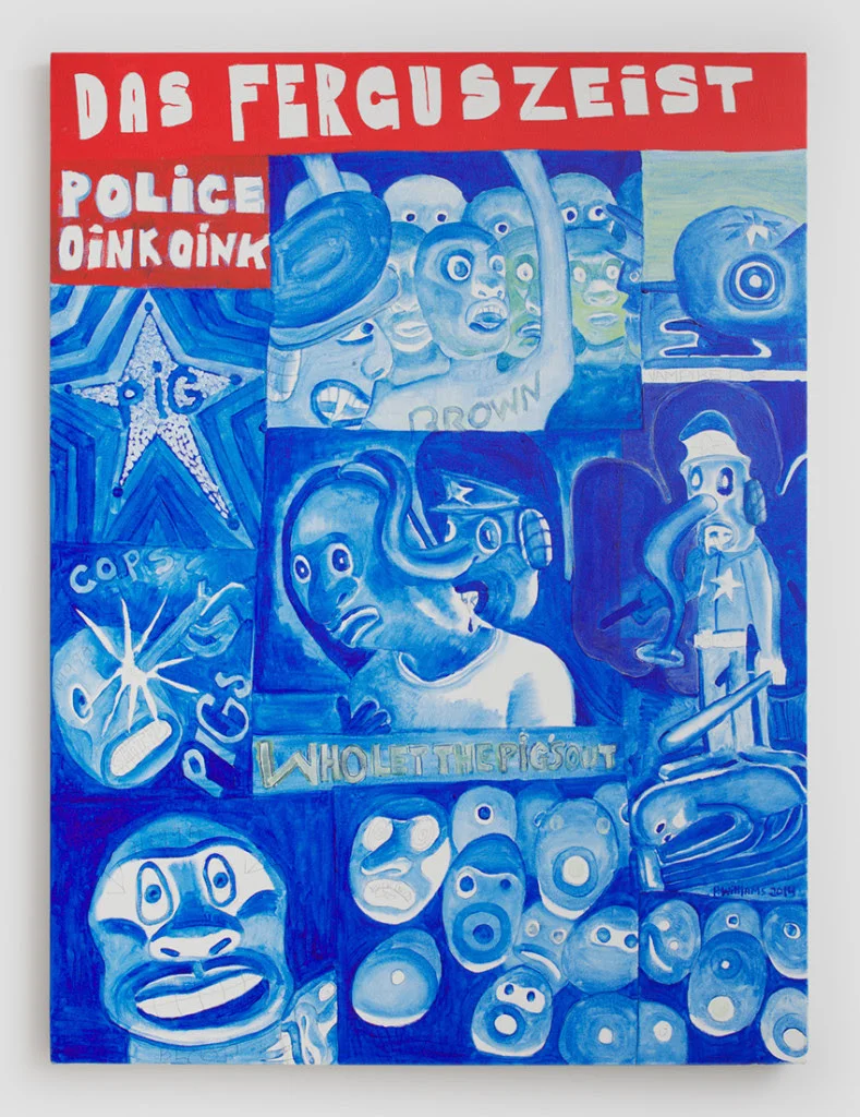 The paintings of Peter Williams have been described by artist and writer William Eckhardt Kohler as “in no particular order: hallucinogenic, acerbic, pained, beautiful, confessional, obsessive, critical, jarring, wild, weird and profoundly human. They are born from Williams’ experiences of race, appetite, and physical vulnerability. The visual lexicon is a heady blend of psychedelic color, abstract pattern, and cartoon-manic imagery.”