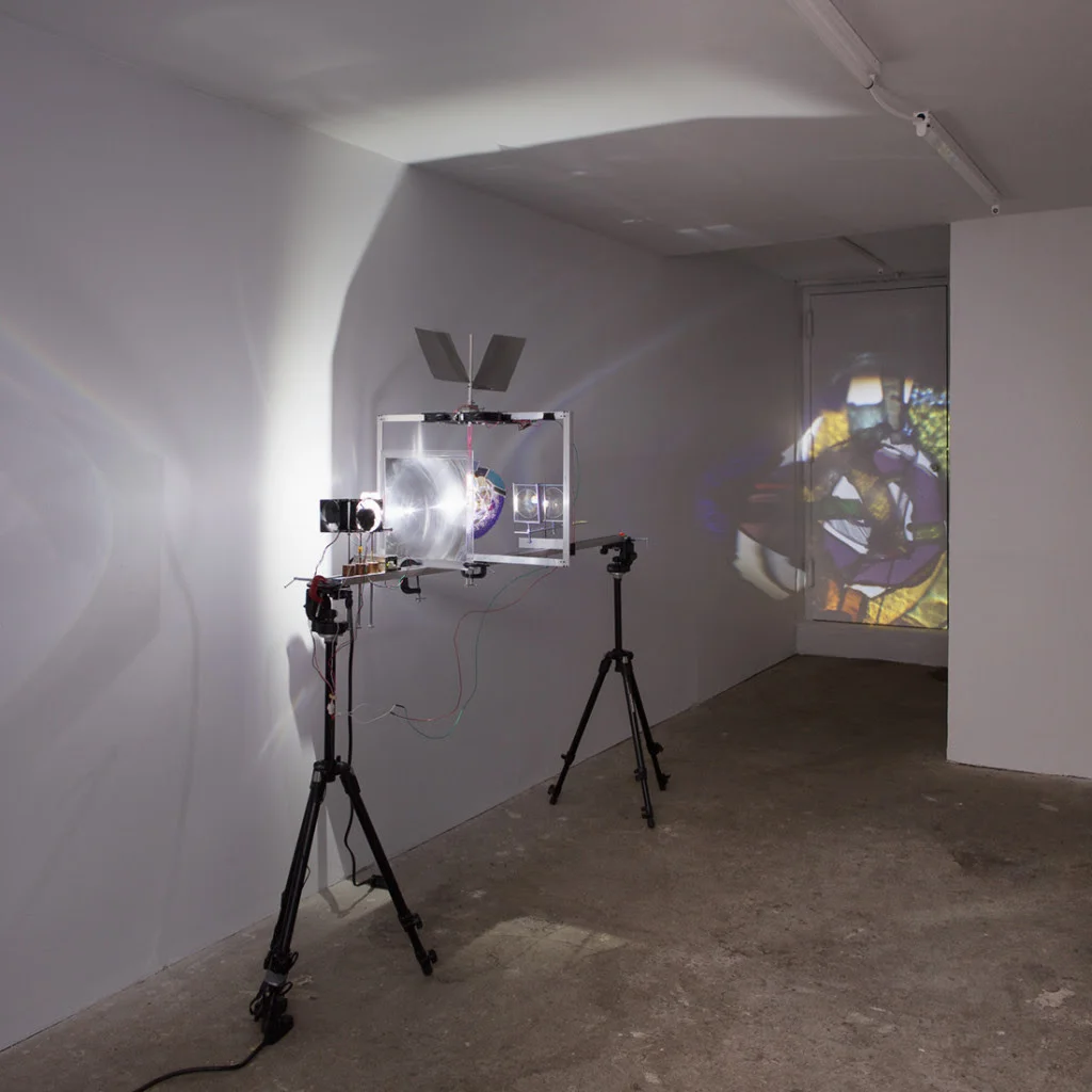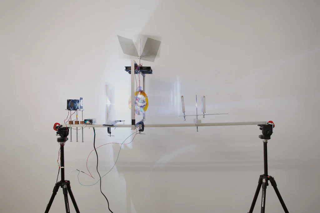 Abigail Donovan is interested in constructing instruments of observation, particularly mechanisms that might open up the space in light. What is moving? What is not? How do we reflect the relative motion of existence? Is time a condition of objects + humans or one or the other? Included in AS IF is the apparatus For Ibn al-Haytham: Considerations Relating to Shapes of Equilibrium, which was built in collaboration with physicist Tom Hughes.