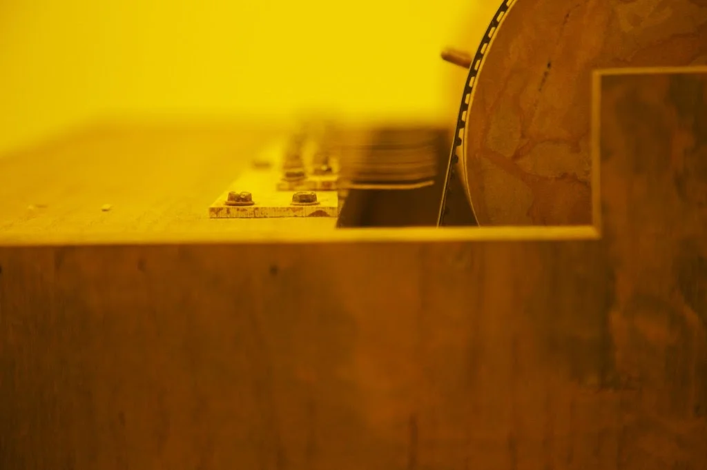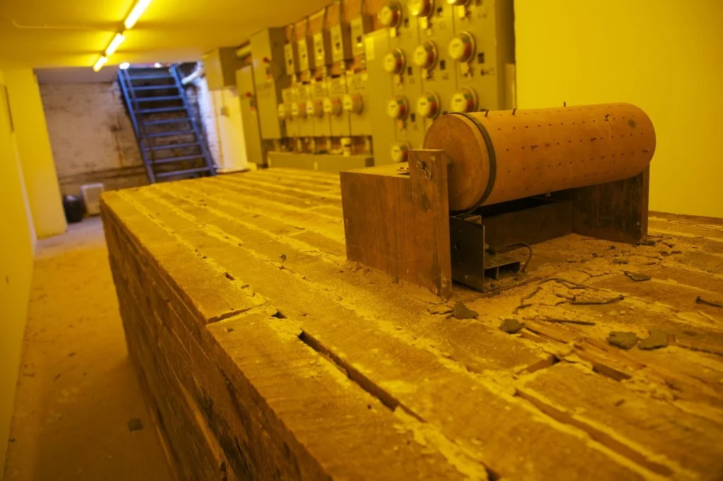 Many nails from the two buildings were dissolved into a rust paste and used as a patina for the surface of the music box. Several others were used as the pins in the rotating cylinder, plucking the comb spokes to produce the sounds. The scale, volume and resonant qualities of the music box were tuned to the actual space, and acoustics, of the gallery, a basement of a former tenement building. The tune is composed from the first letters of the streets that grid the neighborhood surrounding the gallery…and air, from the buildings air shaft, is pumped into the structure to help activate the motor that turns the music box’s cylinder, in an attempt to re-construct and merge experience and perceptions within an architecture.