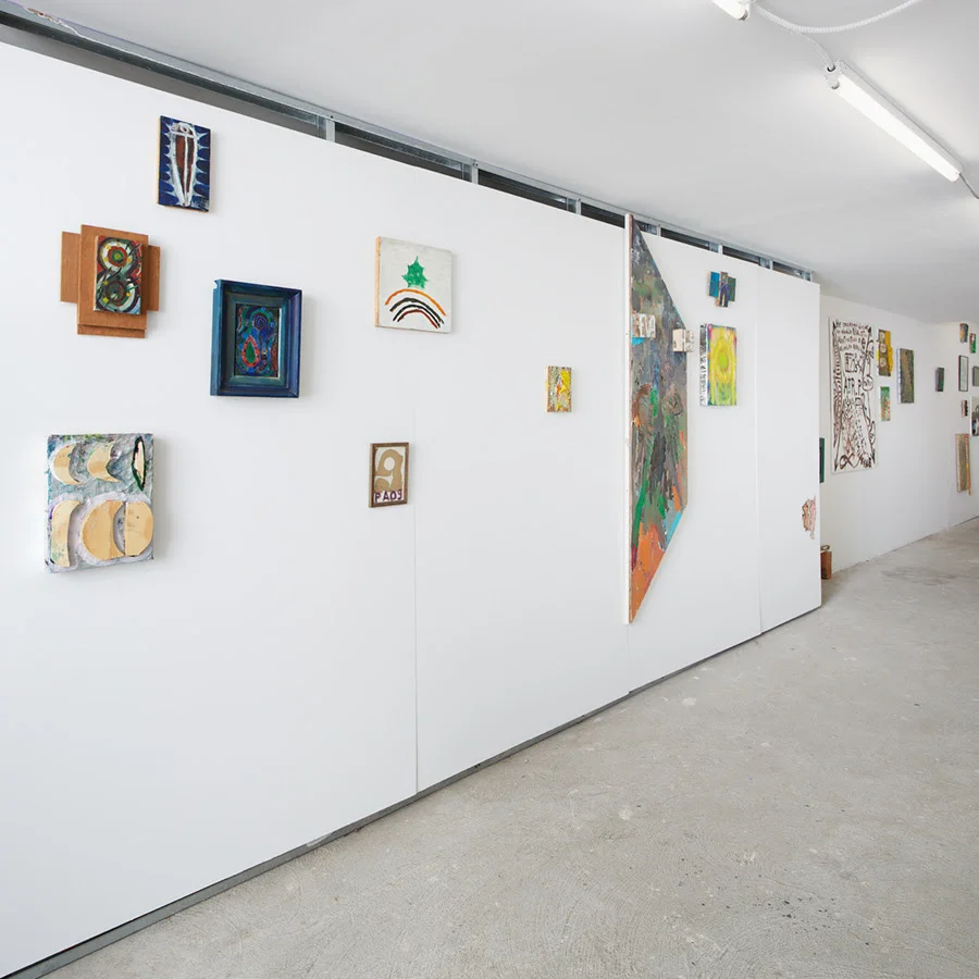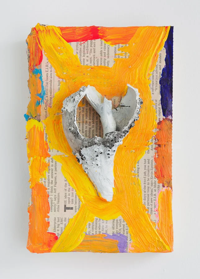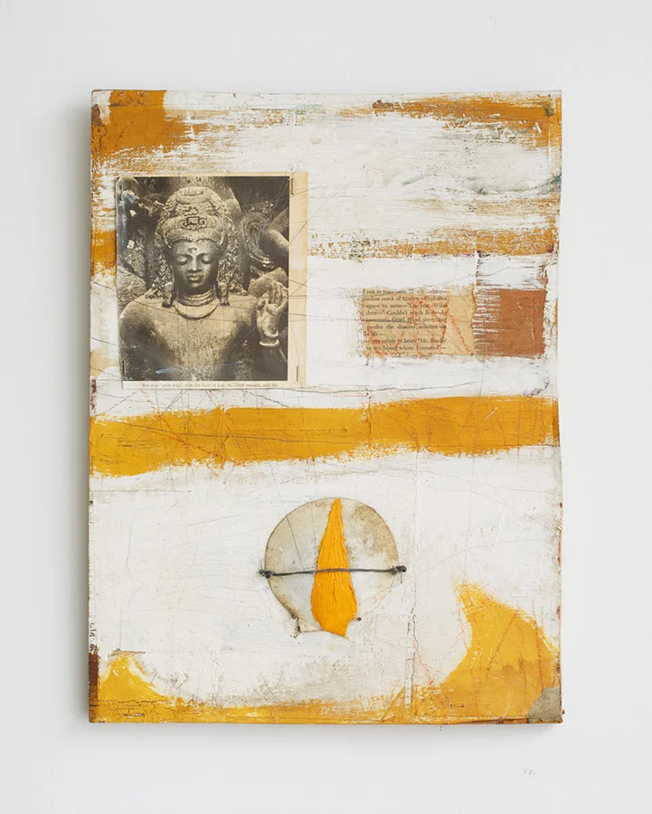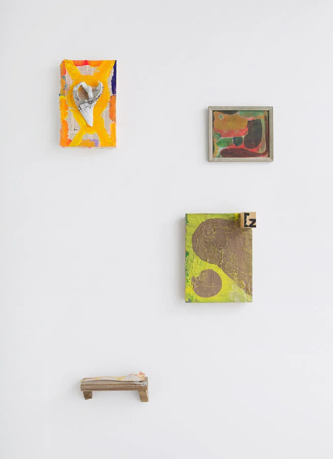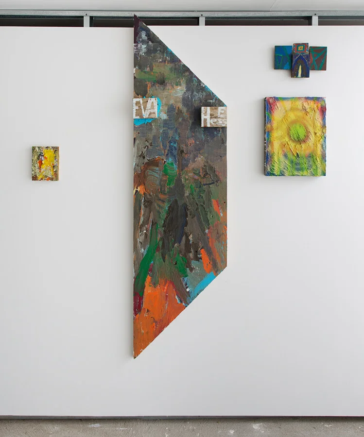 "Rusted Giacometti", a title culled from the surface of one of Peter’s text paintings, spans three decades of exploration, from Peter’s early collages and painting of the 1980’s, which mark his language-heavy digestion of Native American symbolism, and the mythic ethos of Jan Mueller and Marsden Hartley, through his time spent in Williamsburg in the mid 80’s to early 90’s in close dialogue with such painter brethren as Kathy Bradford, Chris Martin, Rick Briggs and Bill Jensen, sharing in their mutual fascination with the paintings of Forrest Bess. Then, the work follows Peter into the woods, through his move upstate, where he continues to practice, witness to babbling brooks, nature’s uninterrupted cycles, and the occasional gnome sighting.